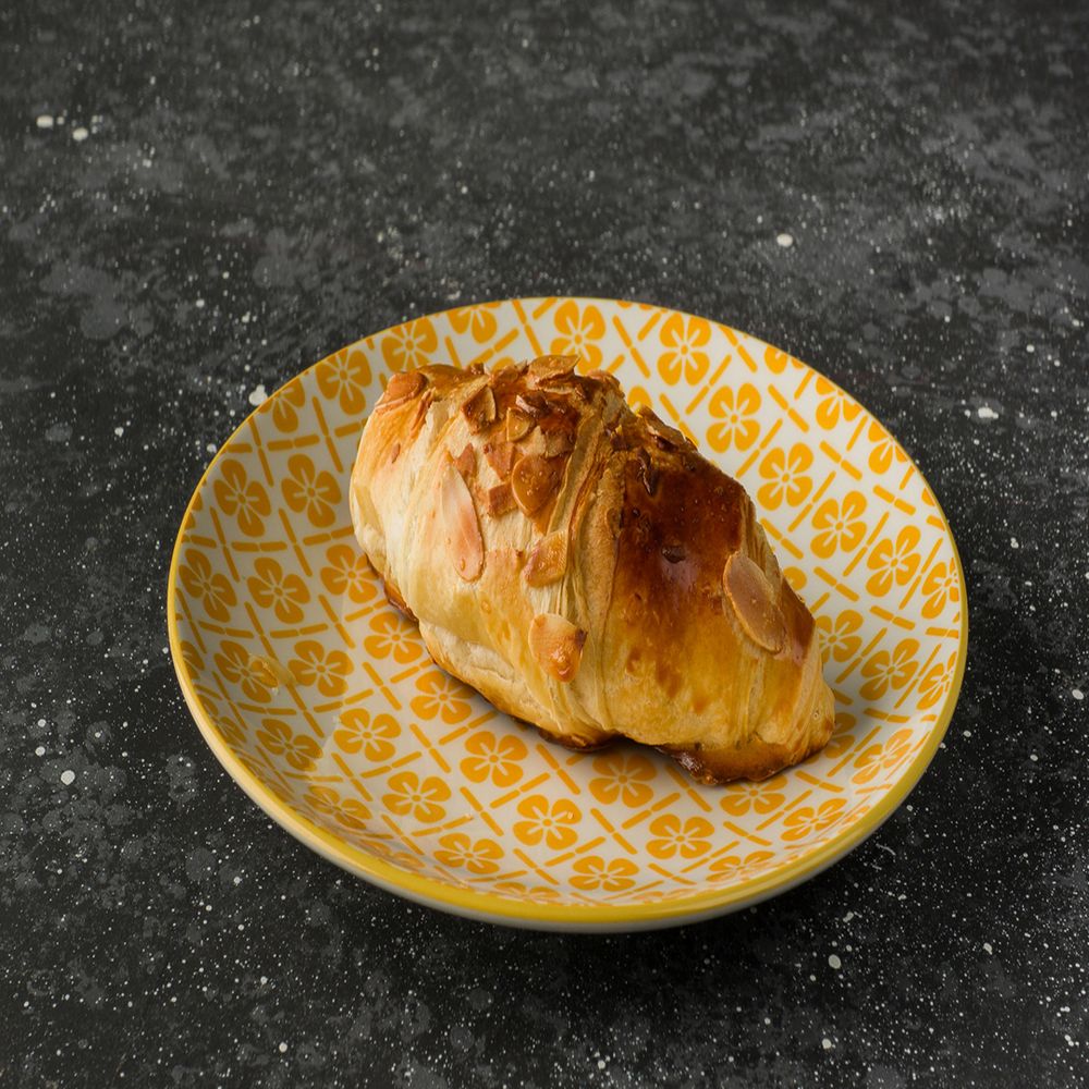 Воздушный и хрустящий круассан с нежной миндальной начинкой и посыпкой из миндальных лепестков.