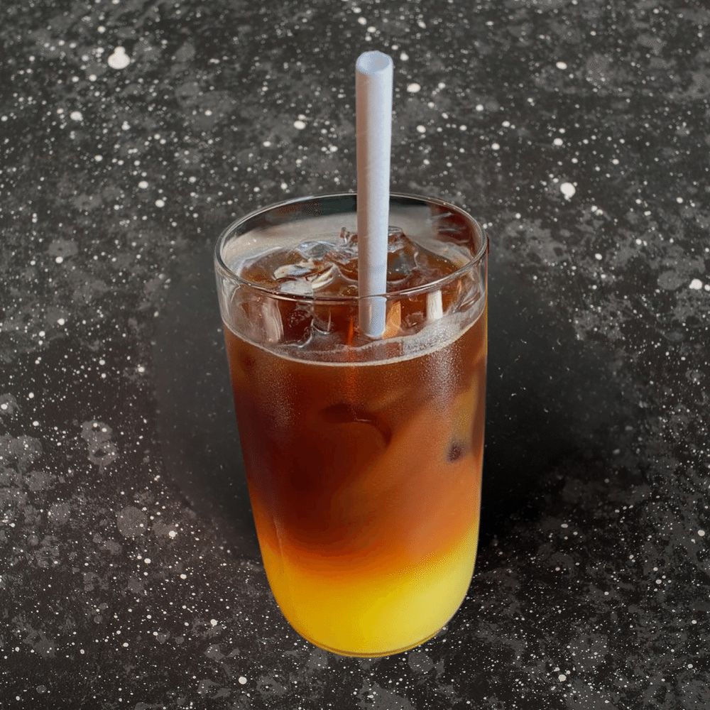 Яркий трехслойный микс из эспрессо, карамельного сиропа и апельсинового сока. Освежающий хит для бодрого дня!